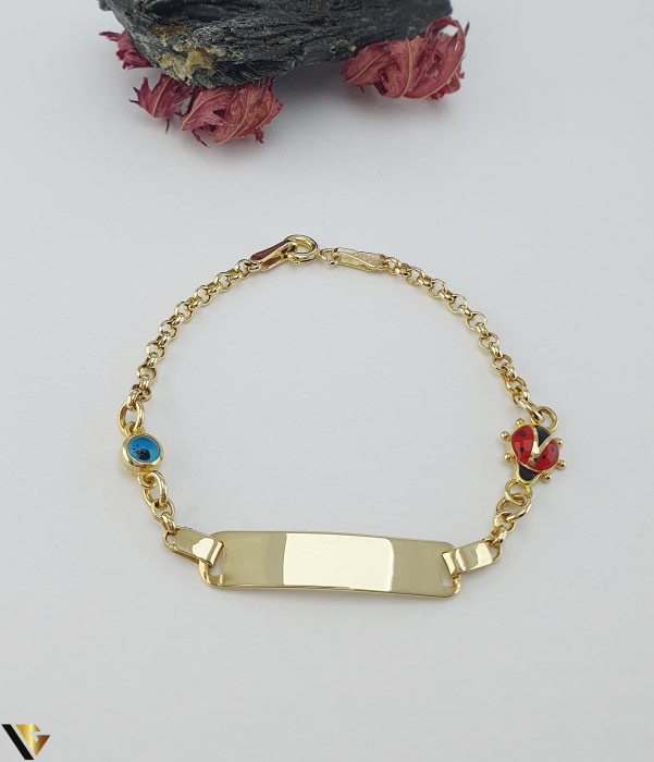 Bratara aur 14k, model cu placuta, design colorat cu elemente accentuate cu email