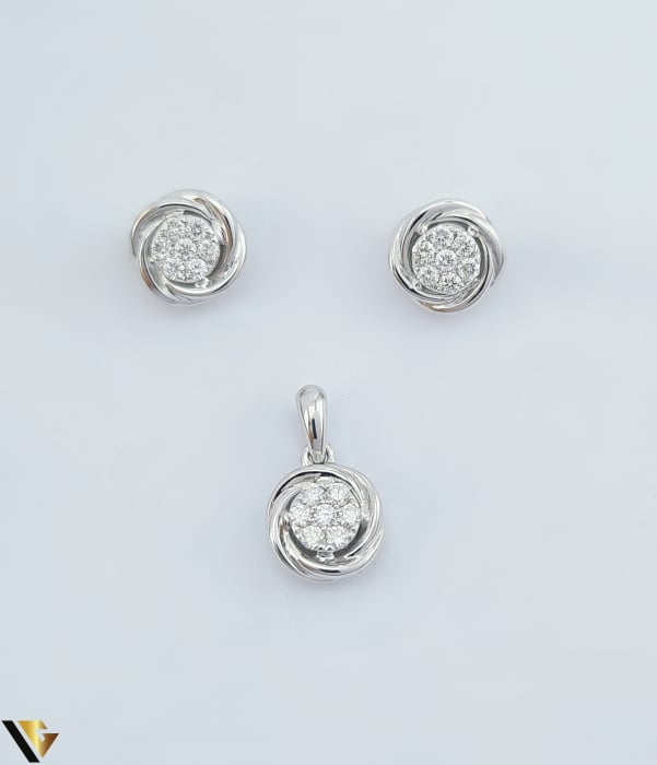 Set Aur Alb 14k, Cercei si Pandantiv, Diamante 0.36 ct